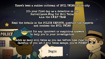 You’re the newest recruit to the Surveillance Wing for Evil Twins (S.W.E.T. Team), and it’s your job to separate the saints from the sinners.